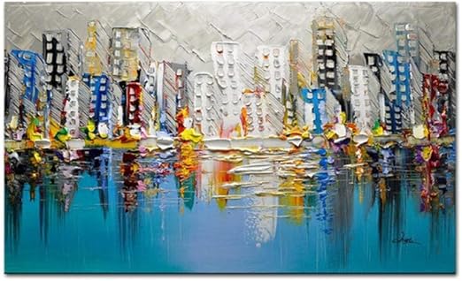 Handgemalte Olgemalde Auf Leinwand Multicolor Stadt Architektonischen Landschaft Einfach Gemalde Ol Gemalde Malerei Wand Kunst Fur Wohnkultur Wohnzimmer Buro Hotelflur Einzigartige Geschenke Im Amazon De Kuche Haushalt